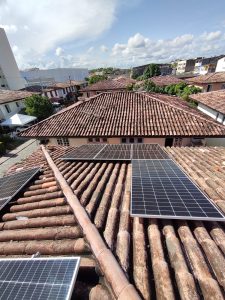 Os painéis solares captam a luz do sol e geram a energia que é “transportada” até o inversor solar, responsável por converter a energia elétrica gerada para as mesmas características da nossa rede elétrica. A geração de energia ocorre por meio do efeito fotovoltaico.